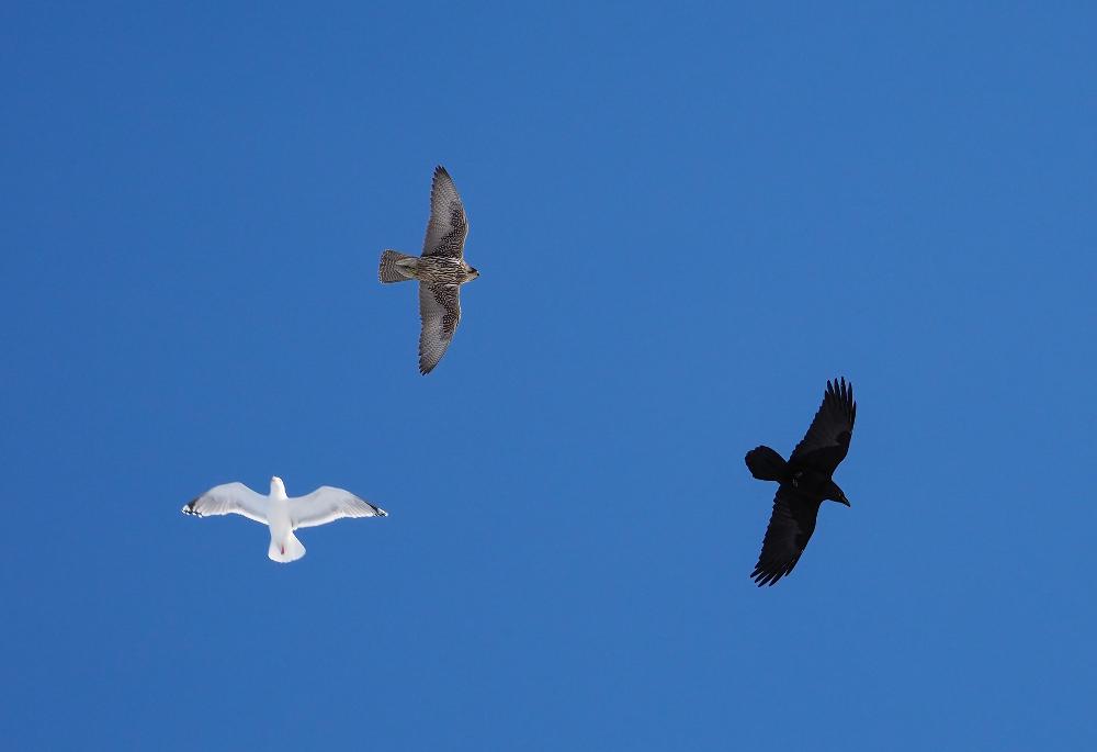 Jeg har forstørret dine billeder op, og jeg må nok overgive mig. Når man ser fuglen i "stor størrelse", kan man se de blå ben (som vandrefalk naturligvis ikke har), men der er også ligesom jizzet bliver anderledes, og måske virker farven også mere grå end brun og sidst og ikke mindst kan jeg godt se at hovedet er jagtfalk og ikke vandrefalk. Mht til vingllængde/hale gælder det dendetegn også for calidus ?