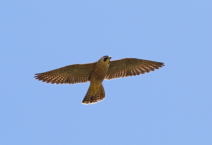 Beskrivelse: Vandrefalke som yngler i det nordlige Algeriet (og Middelhasvområdet generelt) tilhører racen brookei, som har et rustfarvet strøg på brystet og ansigtet.