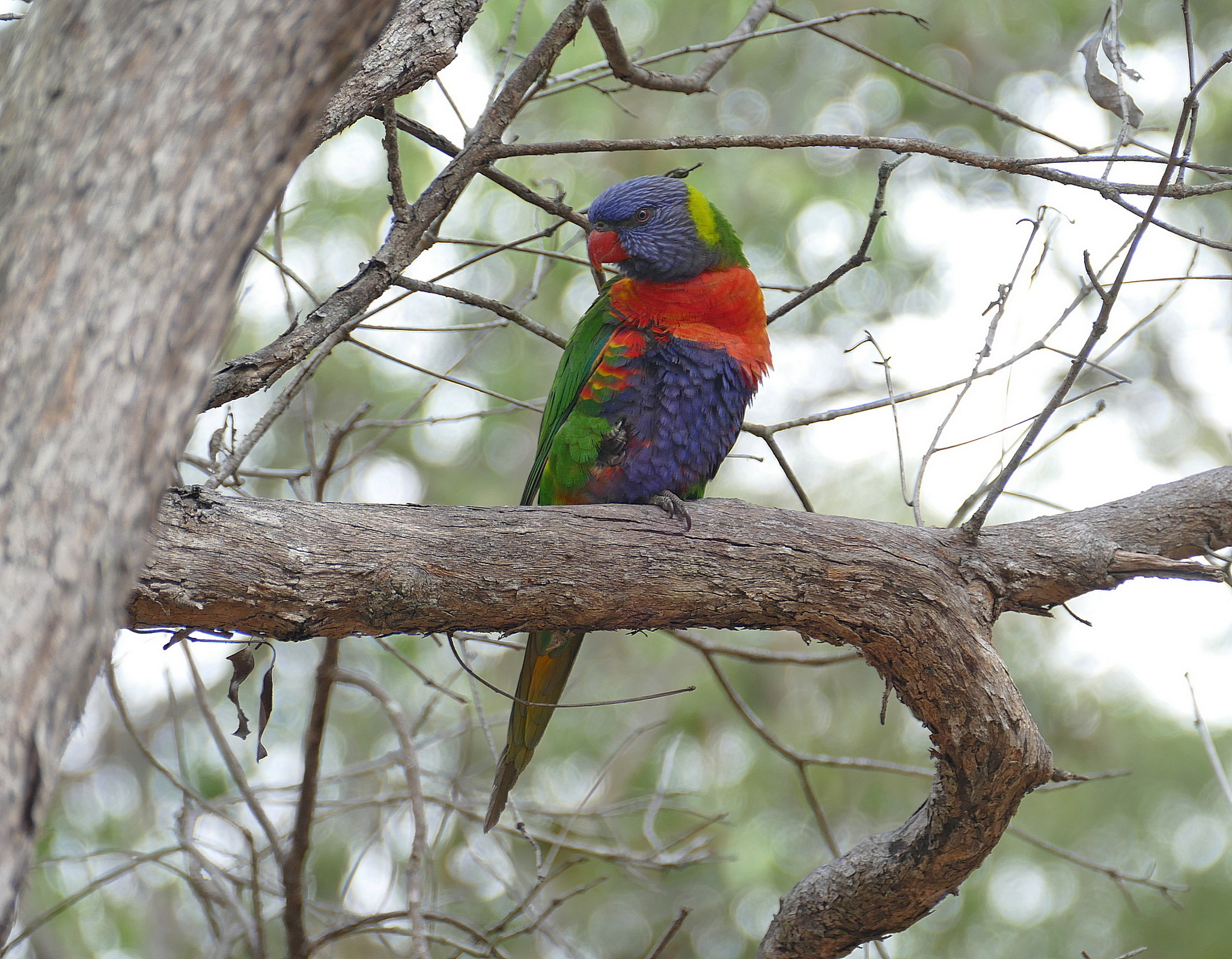 Beskrivelse: Rainbow Lorikeet er en udbredt og almindelig skov- og byfugl langs den australske østkyst.
