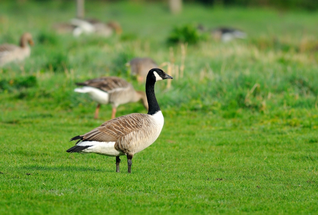 Ved Ølundgård inddæmning ved Otterup kom jeg tilfældigt forbi et par Canadagæs, heraf den ene ringmærket.