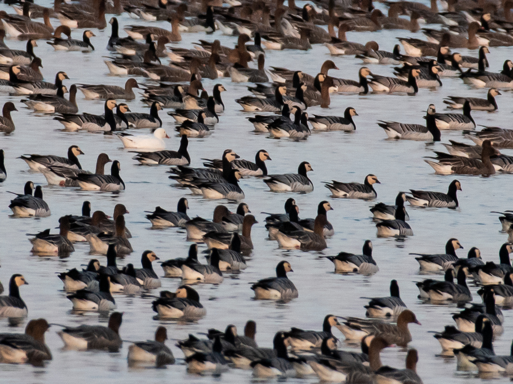 Jeg er i tvivl om en ren 2k Dværgsnegås kan vise reduceret blåt på næbbet på denne tid af året. I litteraturen angives arten at skifte til helt adult-lignende dragt i løbet af første vinter (men hvis de er undsluppet kan de måske være klækket på en usædvanligt tid af året).