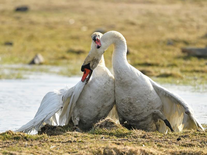 Beskrivelse: Uvist af hvilken årsag tog fanden pludselig ved Knopsvanen. Den buldrede for fuld damp ned mod den sagesløse Blishøne, som dog ikke fortrak en mine. Der var ingen andre svømmefugle i Knopsvanens angrebsretning.