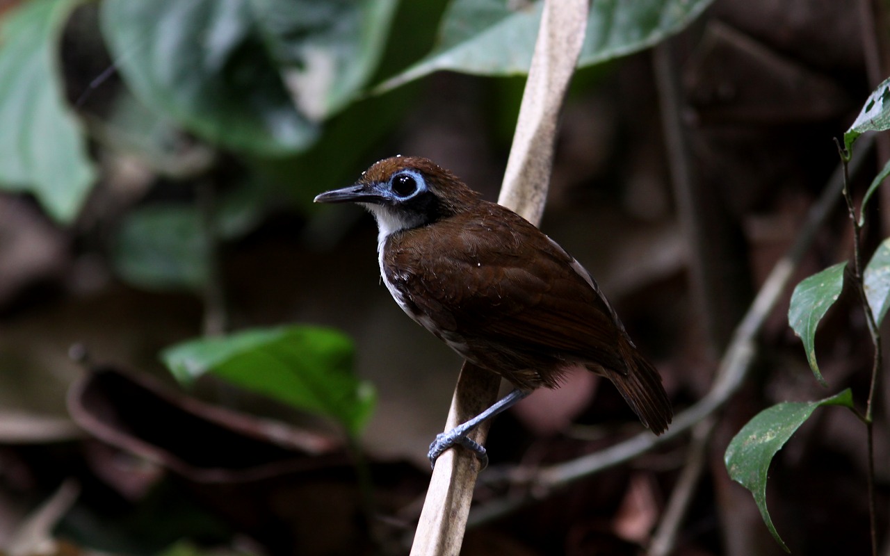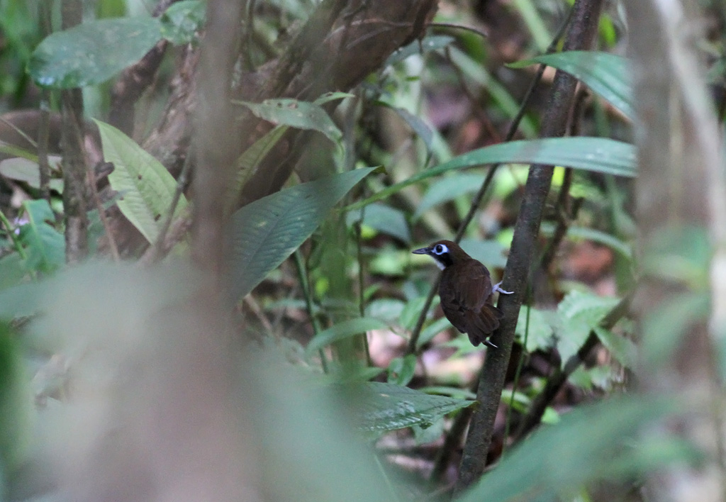 Beskrivelse: At støde på en kæmpe flok hærmyrer på jagt er ubetinget en oplevelse som automatisk vil blive et af en fugleturs mange højdepunkter. Vi var heldige at opleve dette fascinerende sceneri to gange i løbet af 4 uger i Costa Rica, men kun første gang så vi den ”jagtende bredde front”, som mildest talt får alt levende til at flygte over hals og hoved med minimal chance for at undslippe. Og at det samtidig også tit er ensbetydende med ellers fåtallige antbirds, woodcreepers samt diverse andre fugle er jo heller ikke uden betydning. Denne Bicolored Antbird var en af i alt 3 sammen med 2 Gray-headed Tanager, 1 Tawny-winged Woodcreeper og 1 woodcreeper sp. som fulgte denne flok hærmyrer.