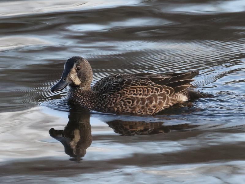 Der blev i sin tid argumenteret for, at en Blåvinget And ved Nyborg i 2001 evt. kunne være hybrid pga. tydeligt rødt øje. Denne fugl fra Lund har minsandten også rødt øje (i hvert fald på dette foto), men har jo ellers ikke nogen karakterer, der indikerer hybrid.