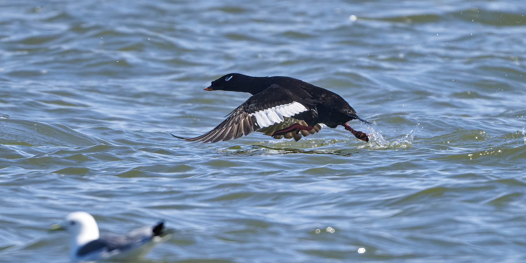 Beskrivelse: One Stejneger´s Scoter and Velvet Scoters.