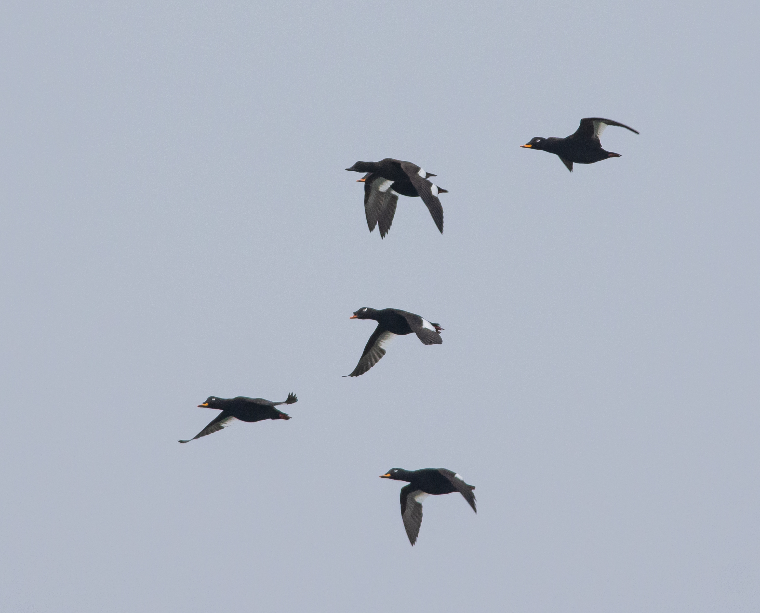 Beskrivelse: Sibirisk fløjlsands karakteristiske hovedprofil er måske det kendetegn, som er lettest at se hos en forbiflyvende fugl i en flok fløjlsænder?