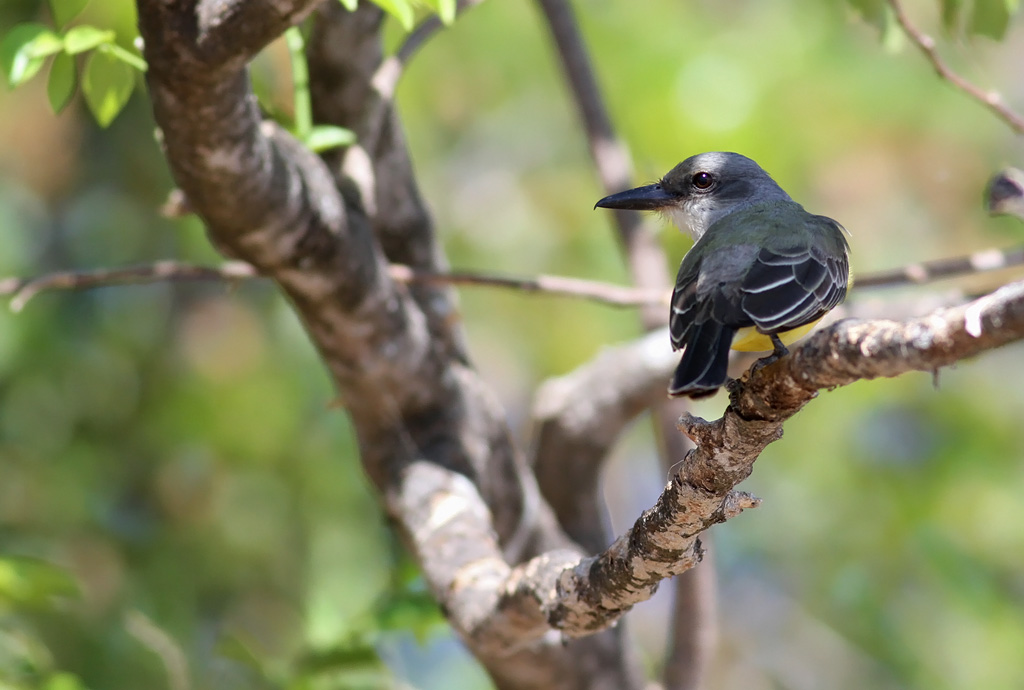 Flot billede, men vist ikke af en Cassin's. De har mørkegråt hovede og bryst, der er i skarp kontrast med den hvide strube. Næbbet ser også alt for langt og kraftigt ud for en Cassin's. Mit bud er enten Tropical (T. melancholicus) eller Couch's Kingbird (T. couchii).