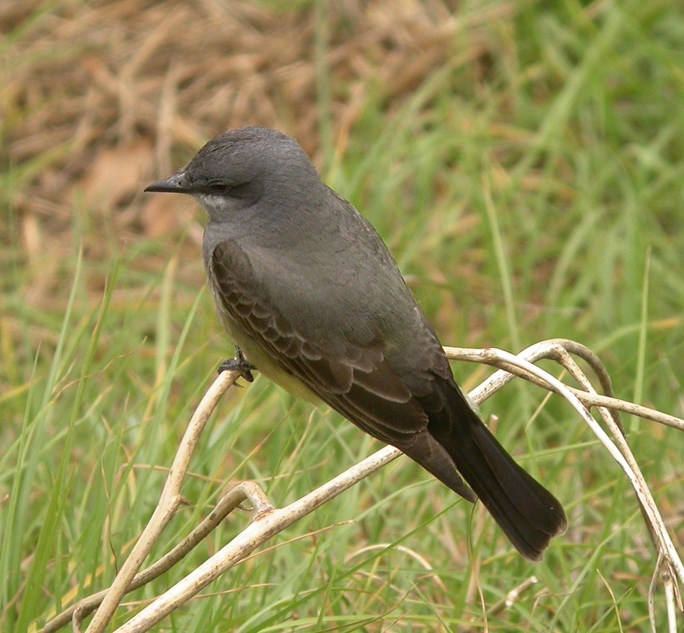 The 'darkest' and most contrasted of the relatively 'look-alike' yellow-green-grey and white kingbirds of the south/western US. Look for the tail pattern and the restricted white malar.