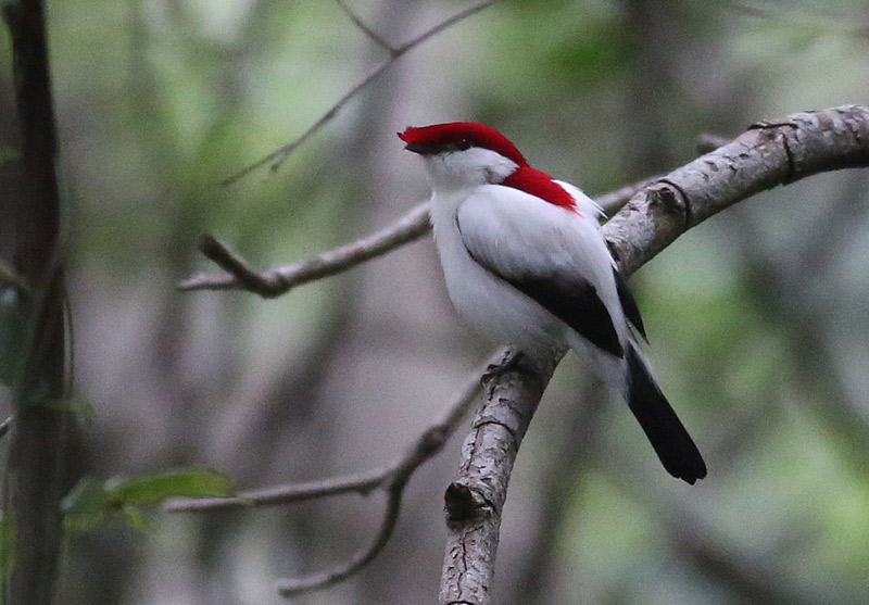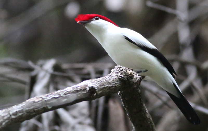 Beskrivelse: Superendemernes superendem! Denne særegne art, der ikke ligner noget andet, blev først fundet i 1996, og har en nuværende verdensbestand på 20 par. Den findes langs en 60 km. langs bjergkæde, hvor den holder tid ved klæfter med vandløb. Da arten blev opdaget antog man at der var tale om en albino-populaion af Helmeted Manakin, men hurtigt blev det klart, at her var tale om noget helt nyt. Og at se en karakteristisk art har kunnet gå uopdaget hen siger ret meget om den ringe ornitologiske aktivitet i de øde og vidstrakte områder i nordøstlige Brasilien.