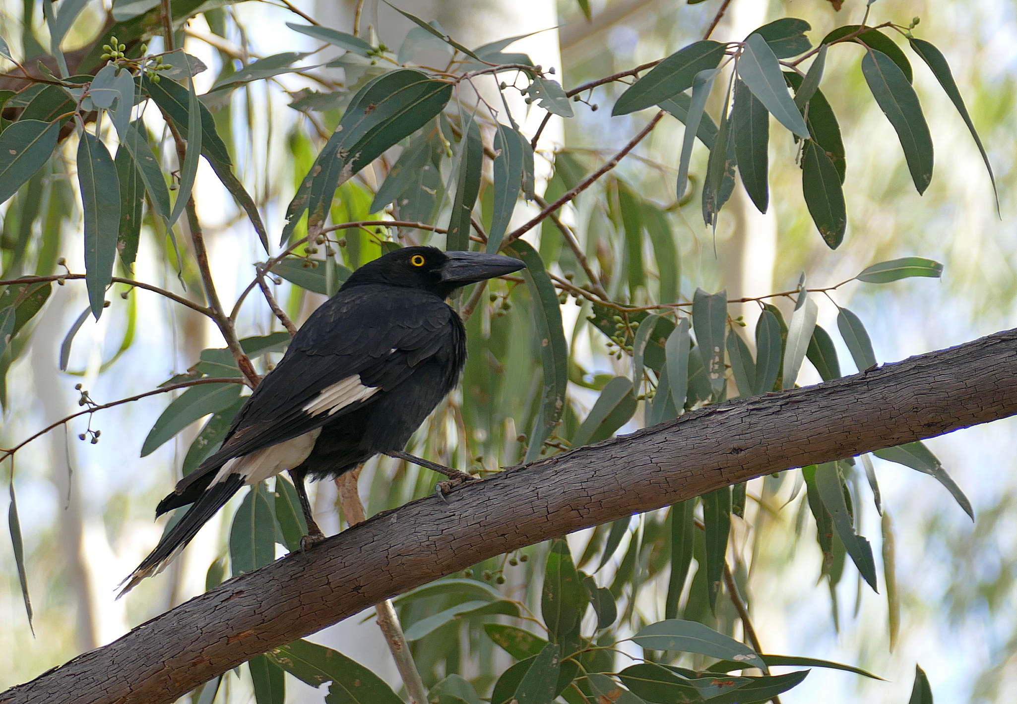 Titel: Pied Currawong perched on branch