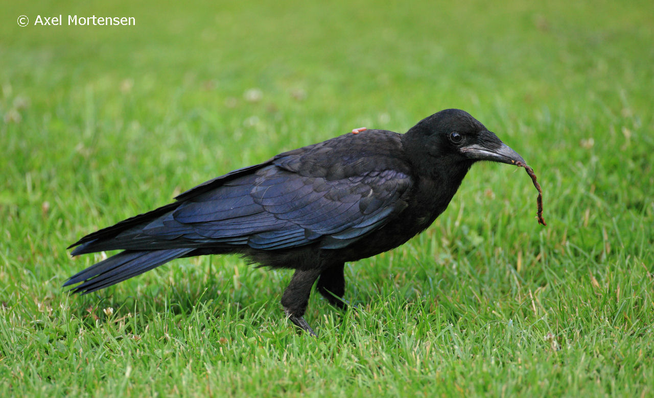 Beskrivelse: Der er tvivl om denne fugl. Jeg synes at farven passer bedst til en 1k Råge. Men der er en del der peger på Sortkrage. Dels har jeg aldrig set Råger på kirkegården dels opholder den sig og er accepteret af de andre krager. er der nogen der kan hjælpe med bestemmelse?