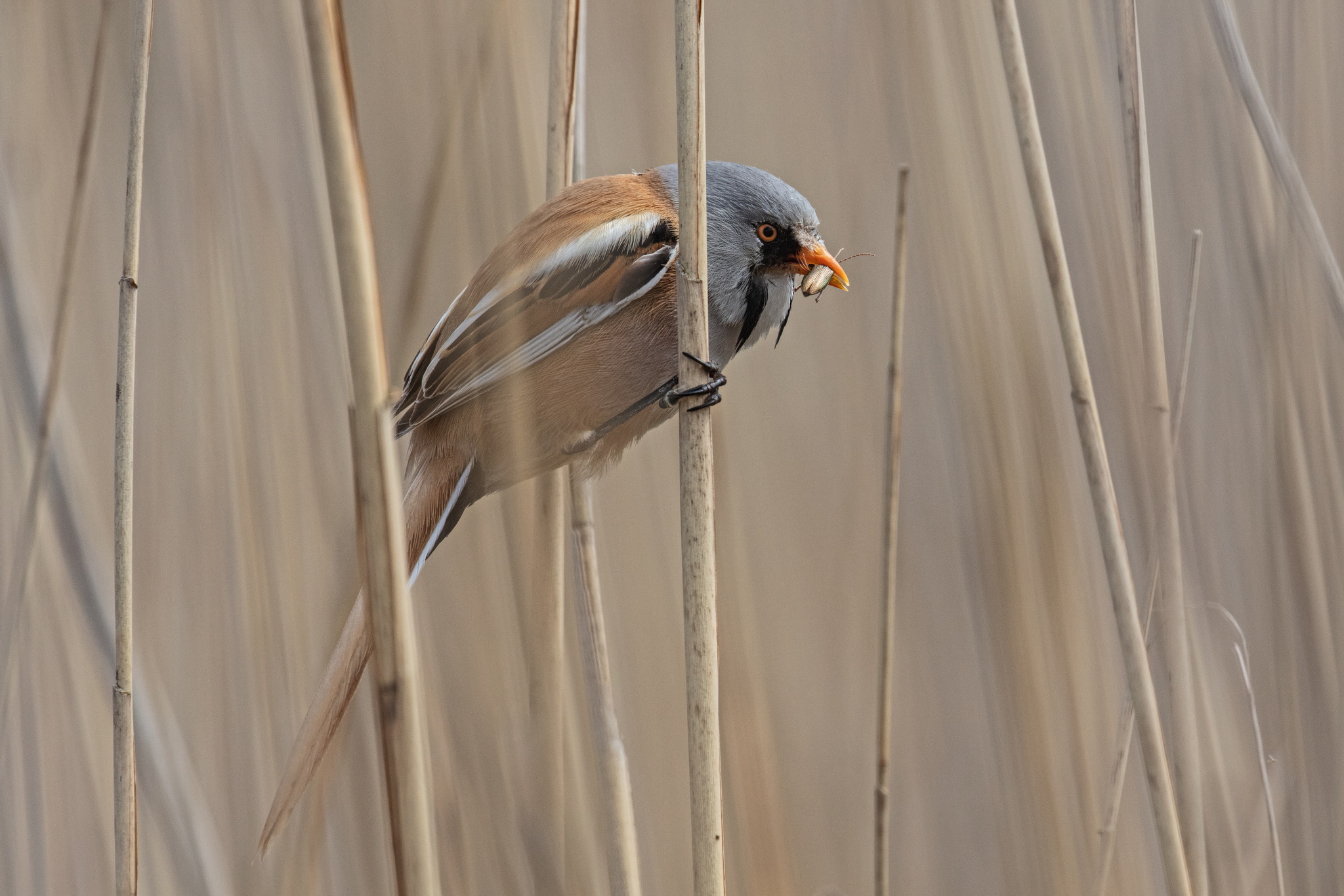 Titel: Skægmejsehan med bytte