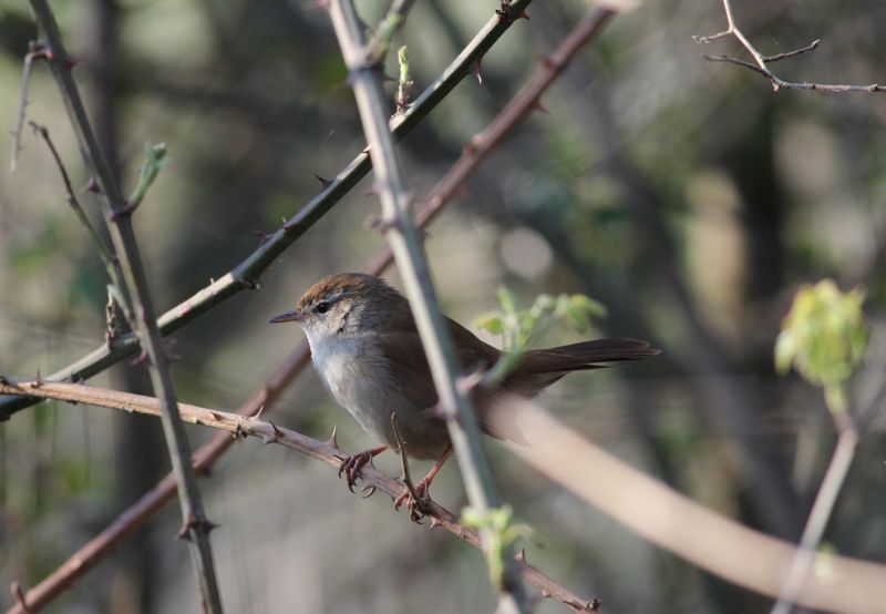 Beskrivelse: En af mange Cettisangere i Aiguamolls de l'Empordà, som er et fantastisk naturreservat ca 2,5 time nord for Barcelona. Her var masser af vade- og andefugle, alle de sydeuropæiske hejrer, mange storke, også sort, Plettet Rørvagtel, Audouinsmåger på stranden og Balearskråper ude på havet, og så skulle det være et sikkert sted for Tamarisksanger.