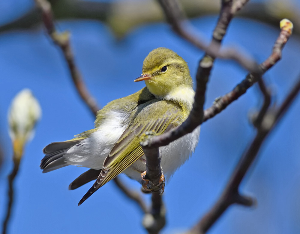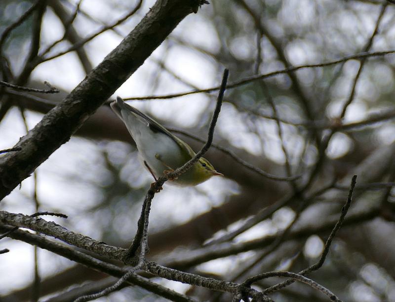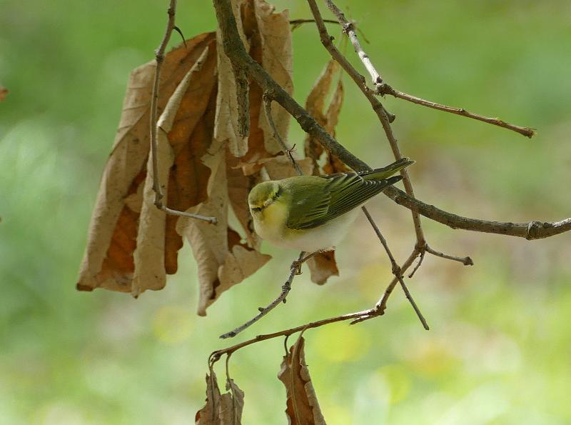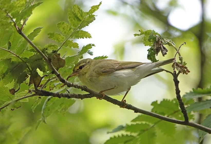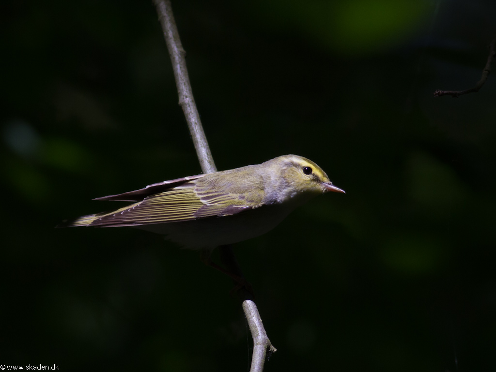 Beskrivelse: 3 skovsangere på lokaliteten, og denne satte sig heldigvis i et af de få solstrejf i den ellers meget mørke skov.