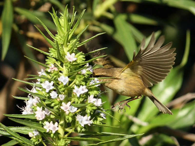 Så et par gange sorthovedet sanger svirre på samme måde uden at få den på kortet. For mig at se medvirker fuglende til bestøvning af blomsterne når de suger nektra.