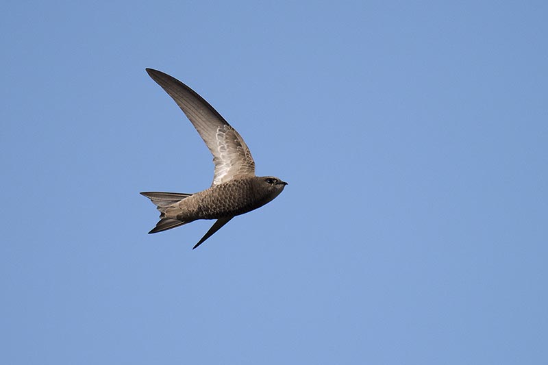This Pallid Swift shows typical PS characters such as greyish-brown overall impression, paler trailing edge to innerwing (contrasting well to darker mantle) and dark eye-mask surrounded by pale. However, the very dark inner primaries confused! According to HBW, Pallid Swift often moult inner primaries at time before leaving breeding sites, whereas this is rare in Common Swift. Surely, the inner primaries and their coverts are very fresh, but i was surprised to find such dark inner pp.