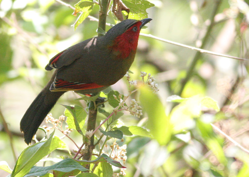 For Red-faced Liocichla nævnes under "Doi Ang Krang", at et police checkpoint er en særlig god lokalitet. det stemte, idet vi ved begge besøg let fandt specialiteten. Her kan vi - og vi er Franch Ishøi, Michael Trasborg og KMO - supplere med, at man skal stille sig lige bag toiletbygningen ved police checkpointet. Her findes et krat der bruges som affaldsplads og rummer småbunker af skrald. Det lyder ikke så lækkert, men sådan noget tiltrækker altid fugle i syden. Vi så smågrupper ved hvert besøg dagen igennem, samt en masse andet, men dét er en anden historie.
