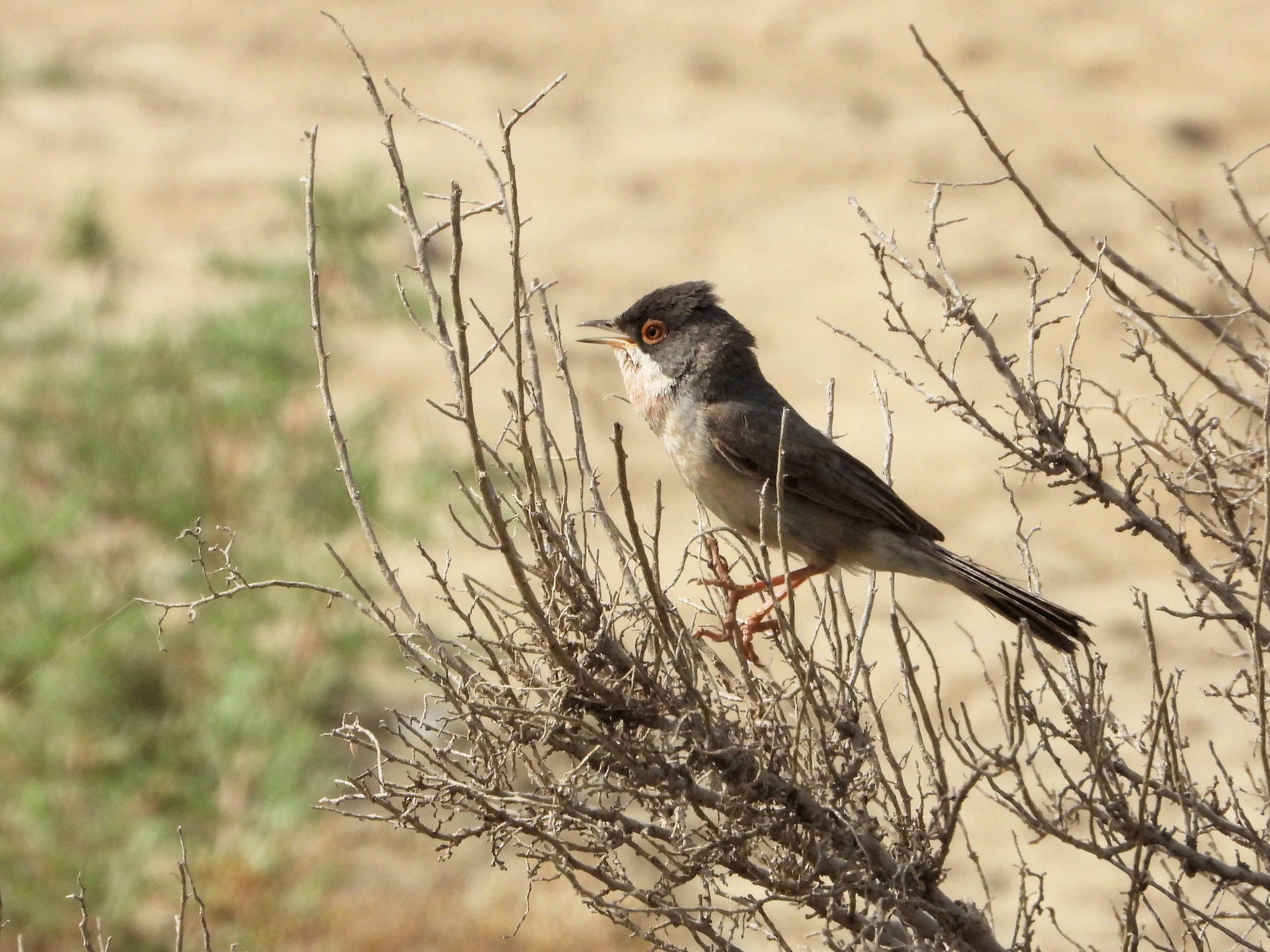 Beskrivelse: I betragtning af, hvor få fald af småfugle, der konstateredes i Eilat i marts og først i april 2013 er det godt gået med hele 2 Menetries Sanger på én dag. Den viste fugl blev et stykke tid, og sang desuden ivrigt indenfor et lille område.