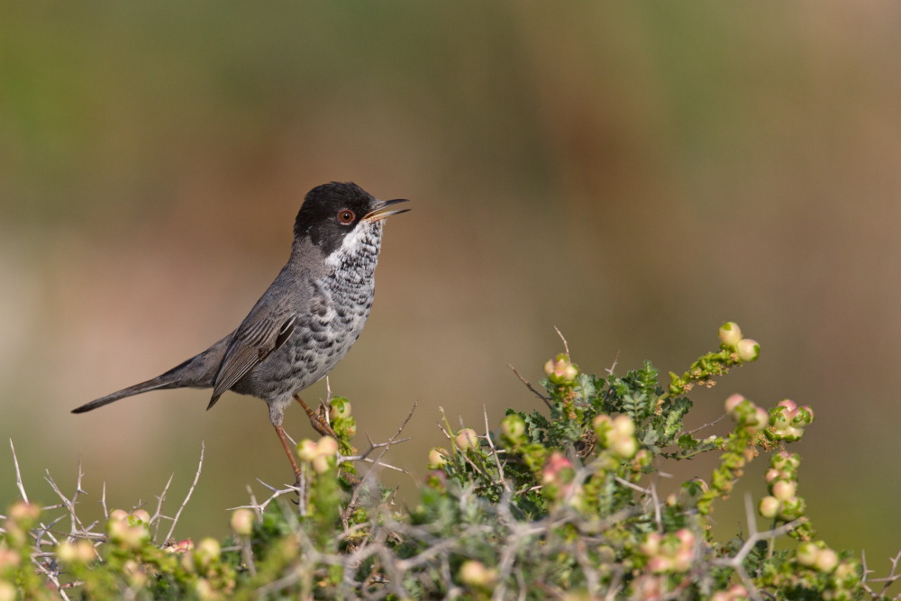 Beskrivelse: Cyprus warbler female-types like this can be a bit problematic in the field when not seen properly and can make one think of Menetriés Warbler female-type, due to similar behaviour and lack of any discerning ID-marks. But this bird was rather dark and showed the diagnostic dark spots on the undertail coverts.