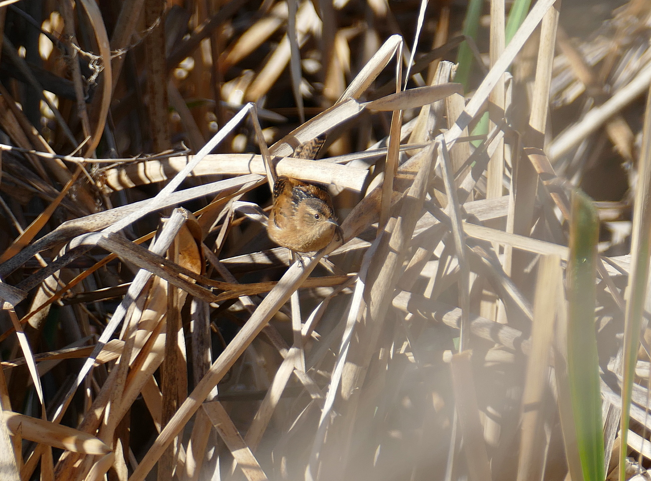 Beskrivelse: Grass Wren kan være ret almindelig i rørskove, hvor de kan luske rundt mellem de sammenfiltrede tagrør, og ofte kun afsløre deres tilstedeværelse når de synger.