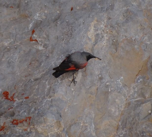 Beskrivelse: En af mine drømmefugle. Min datter fandt reden i godt 2800m højde på den spanske side af "La brêche de Roland" hvor vi kunne observere fuglen igen og igen komme med føde til ungerne.