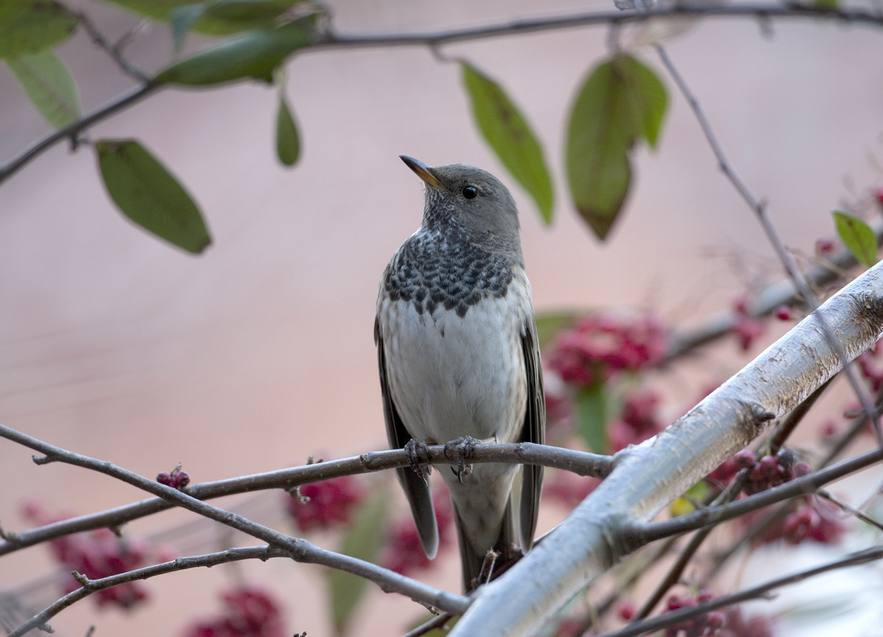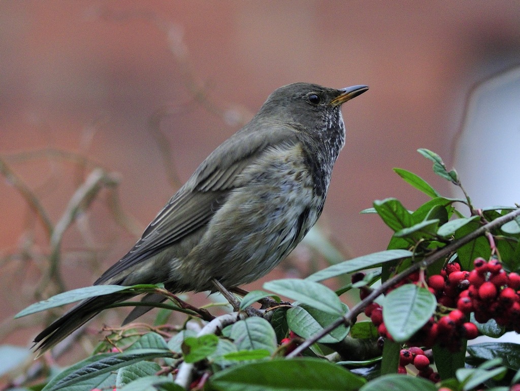 Beskrivelse: Regnvejrsbilleder af ivrigt fouragerende sortstrubet drossel. Min første. Ved desværre ikke, hvem der opdagede fuglen først.