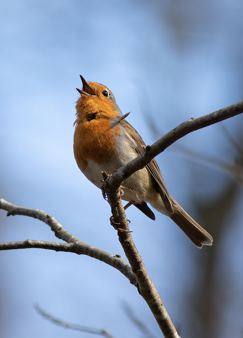Beskrivelse: En årsunge af Rødhals, som stadig har enkelte plettede rygfjer tilbage fra den juvenile dragt.