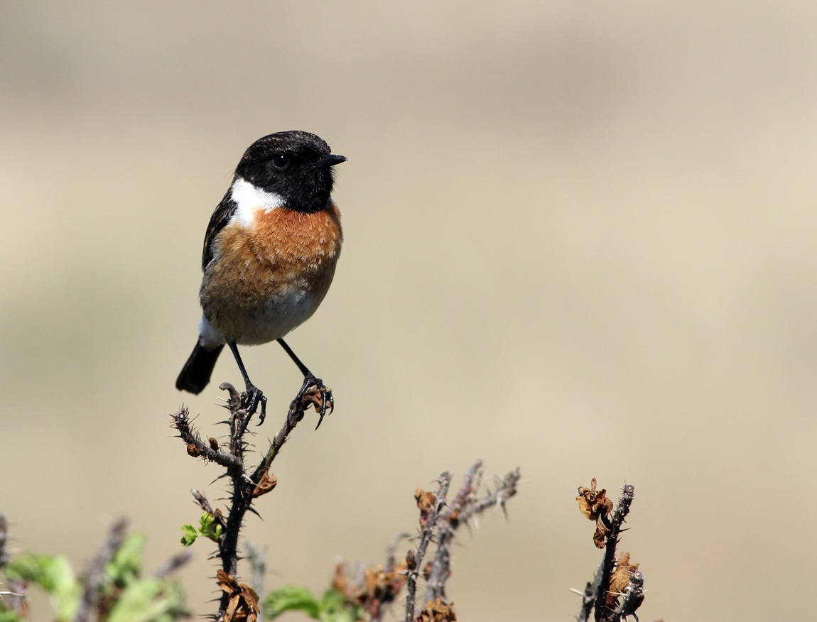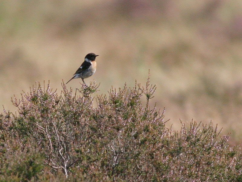 Fuglen havde ret bredt hvidt felt på halssiden samt bred hvid overgump; bruntonede og let stribede flanker samt undervingetegning beviste dog klart, at fuglen var en vestlig Sortstrubet Bynkefugl.
