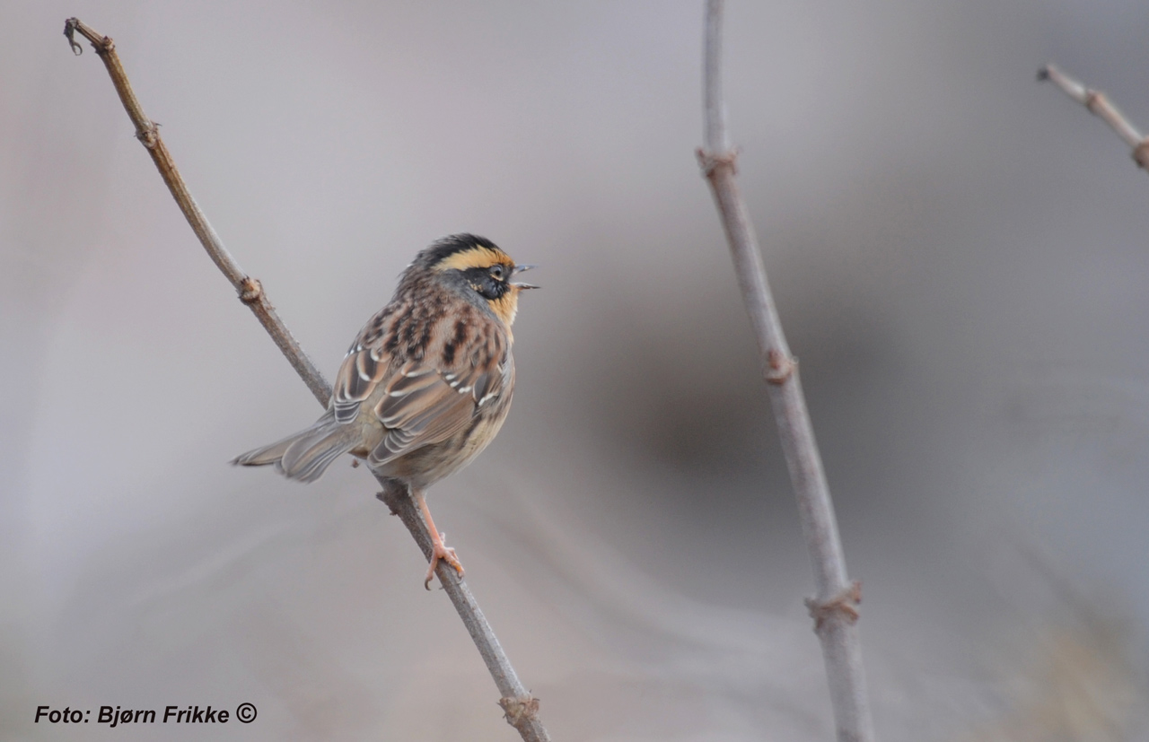 Beskrivelse: Årsskiftets store favorit, der fortset kan ses i Hirtshals. Omkring kønsbestemmelsen fremfører Svensson bl.a., at rent sorte issesider samt sort skæltegning på brystet er hankarakterer. Den aktuelle fugl har tidvis opført sig som en han ved at sidde og synge, og de skarpt afsatte sorte issesider understøtter også dette. Skæltegningen på brystet var hos ingen af efterårets fugle freem til midt i novembertydelig, men har været gradvis mere tydelig fra december og frem hos Hirtshals-fuglen- sammenlign f.eks. med Lars Grøns foto, taget efter nytår. Formentligt er tegningen om efteråret gemt bag lyse fjerspidser, og ved slid af dragten ser man derfor gradvis mere og mere sort skæltegning jo længere vinteren skrider frem, idet der dog også må tages højde for, hvorledes fjerene pustes op. Det kunne være interessant at sammenligne med, hvordan blegere fugle med bruntonede hovedtegninger (der bør være hunner) ser ud.