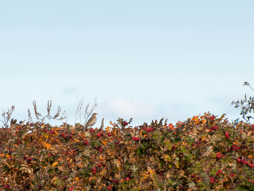 Beskrivelse: En af fire mellem bjergpibere, en enkelt rødstrubet, engpibere og en skærpiber omkring Sandormsporet.
