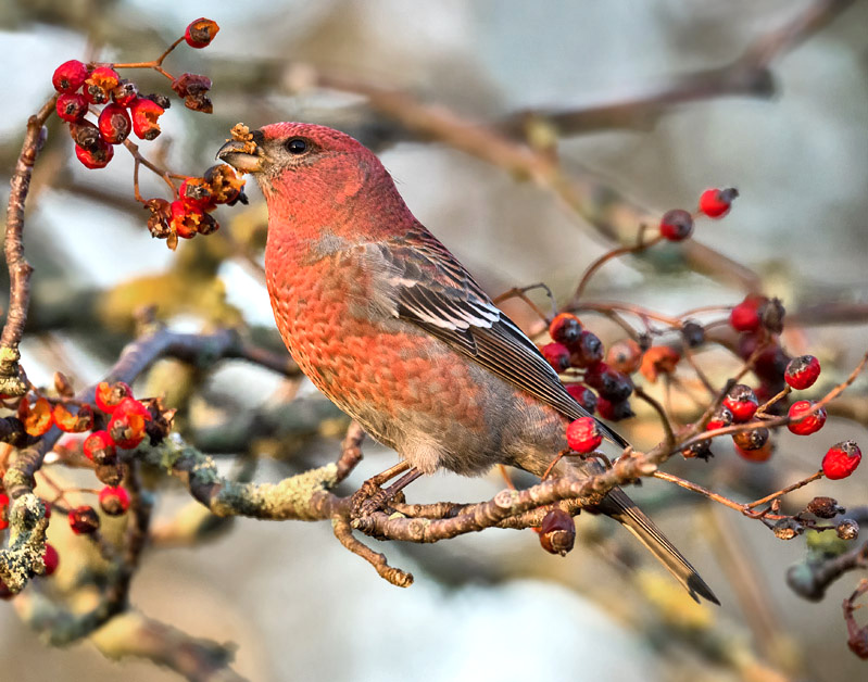 Beskrivelse: I de sydvestsvenske byer Varberg, Halmstad og Ängelholm kan man p.t. se flokke af Krognæb søge fødeved rønnebær, i selskab med drosler og Silkehaler.