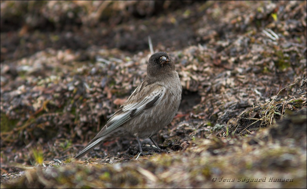 Brandt’s Mountain Finch (Black-headed Mountain Finch) Leucosticte brandti er sammen med Plain Mountain Finch (tidl. Hodgson’s Mountain or Rosy Finch) nogle af de fugle som året rundt giver liv i landskaberne i de karske råkolde Tien Shan bjerge (Himmelbjergene) langs Kirgisistans grænse ind til Kina. Der er ikke mange fugle over trægrænsen, og især ikke om vinteren og i det tidlige forår, men når man støder på bjergfinkerne er det altid interessant. Om sommeren og i de store vinterflokke på flere hundrede individer er BMF temmelig sky – medmindre man uforvarende kommer til at komme reden for nær; så popper de op på den nærmeste sten, og sidder roligt og nedstirrer Klodshans med sine klare sorte øjne. Om vinteren – sidst oplevet for ganske få uger siden, oplevedes flere flokke af BMF der rastløst og ængsteligt flagrede rundt langs de åbne græsarealer i det ellers snedækkede landskab. Umiddelbart ingen prædatorer – fare på færde, eller hur… Måske skyggen af en storfalk i horisonten tolder bestanden nu og da. Hvorfor ellers så forskrækkede?