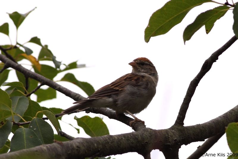 OK - det Danske navn for fuglen er Rustkronet Træspurv (Spizella passarina) ifølge DOF's "AVES - Danske fuglenavne til Monroe and Sibley's - A World Checklist of Birds"