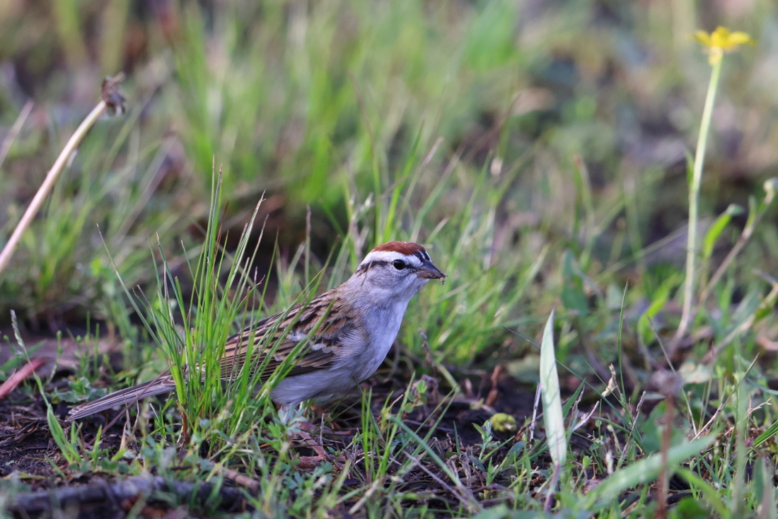 Beskrivelse: Below the feeder next door to the summer cottage there were Chipmonks and Chipping sparrow's - adult's in breeding plumage and juveniles