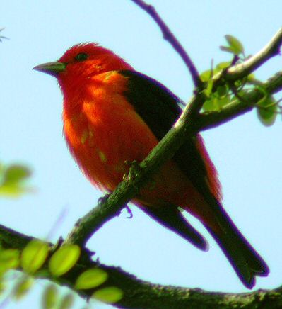Er det ikke en Scarlet Tanager med det helt mørke næb og de sorte vinger?