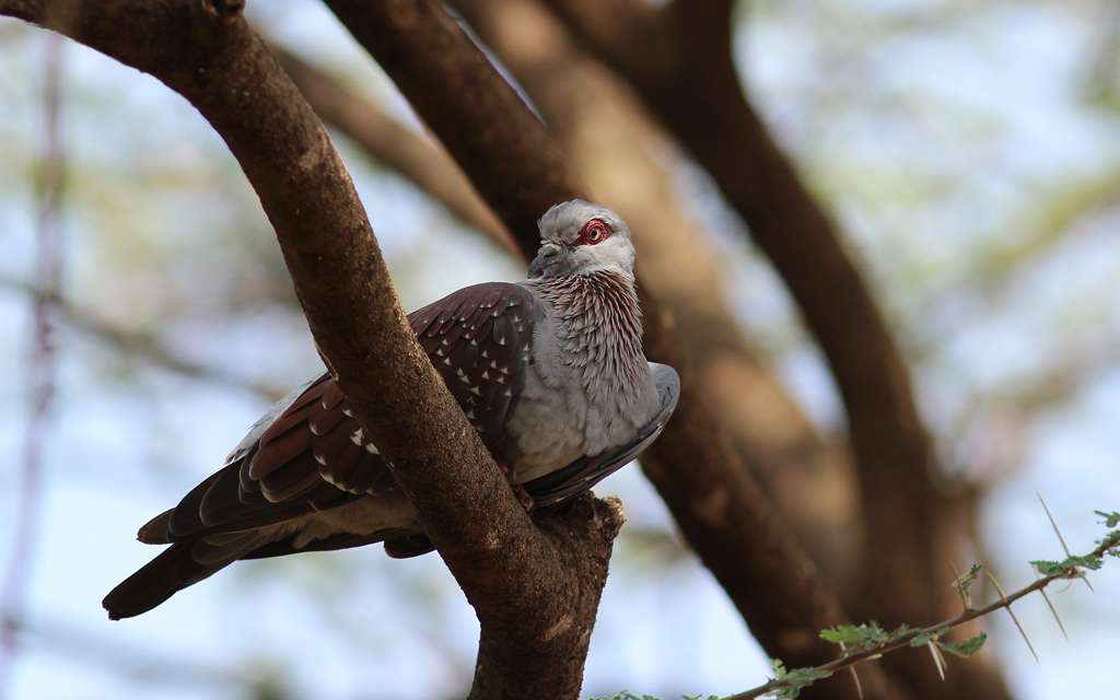 Beskrivelse: En almindelig by-due i Afrika, hvor jeg ofte har brugt den som tidsfordriv, mens der blev ventet (håbet) på næste bus.