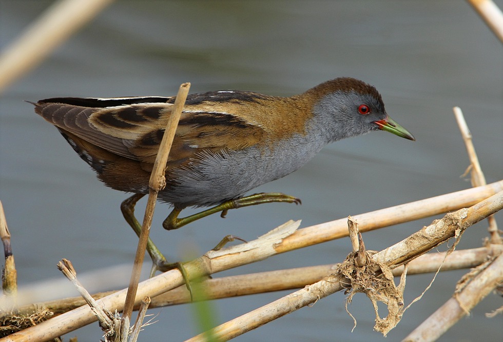 Beskrivelse: Rørskovsskjulet ved "Anita Lake" ved Birdwatching Centre bød i år på uslåelige observationer af Lille Rrvagtel, selv midt på dagen vadede de helt frit omkring,