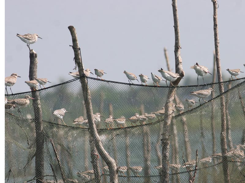 Der er 7 arter. Stenvenderen står ret gemt, men den er god nok. Et meget specielt syn, denne "højtvandsrasteplads" på bundgarnspæle flere kilometer til havs.
