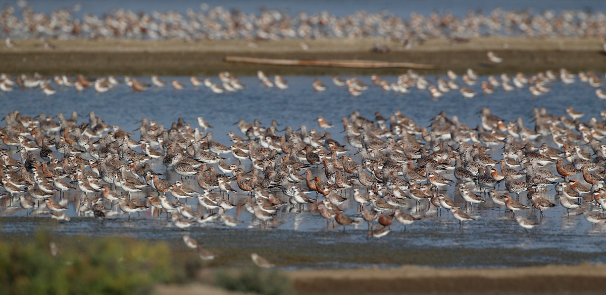 Kæmperyle, Strandhjejle, Terekklire, Krumnæbbet Ryle, Lille Kobbersneppe og Plettet Hvidklire (Nordmann's)