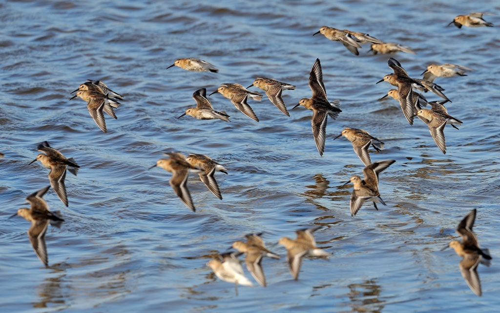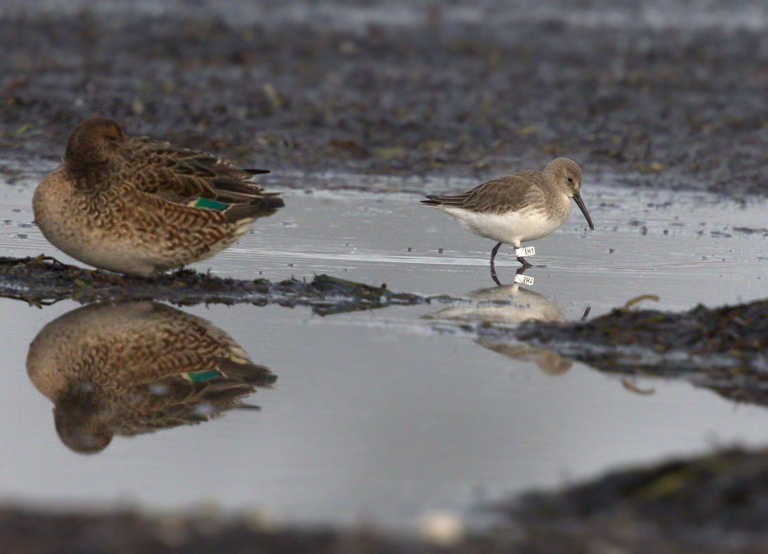 Genfundet d.24 maj 2023 kl.20.30 fødesøgende i en flok Almindelige Ryler på faldende vand ved Ballum Sluse ,