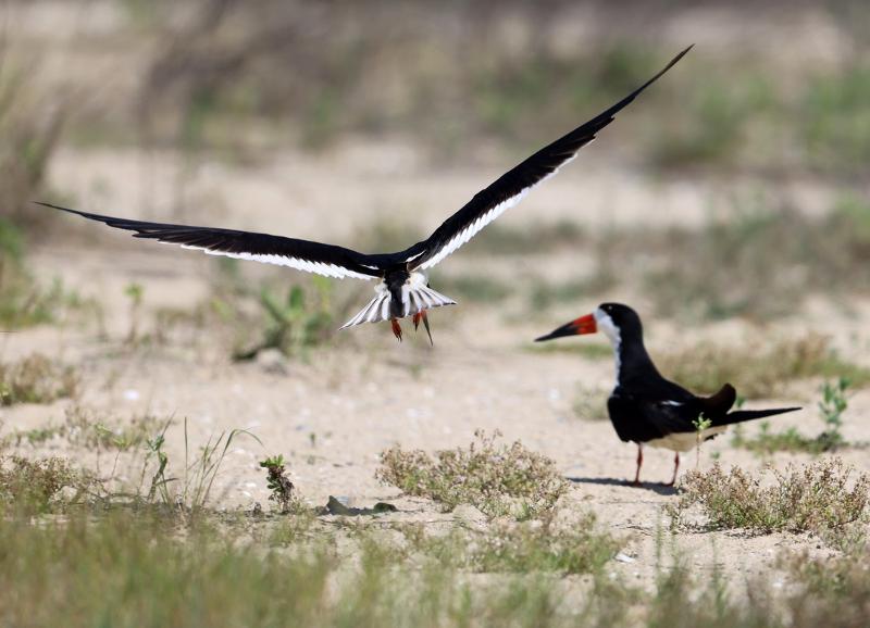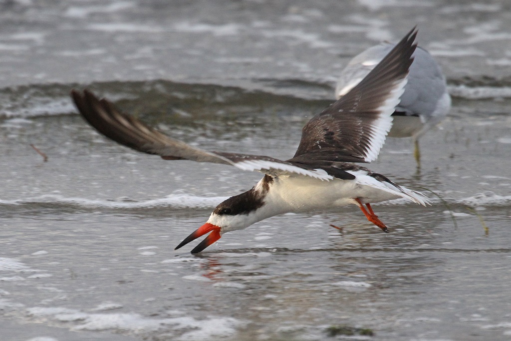 Beskrivelse: Sammen med forsters terne, toppet skallesluger og lattermåger.