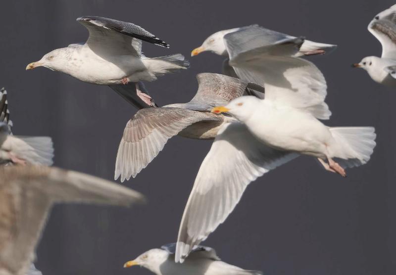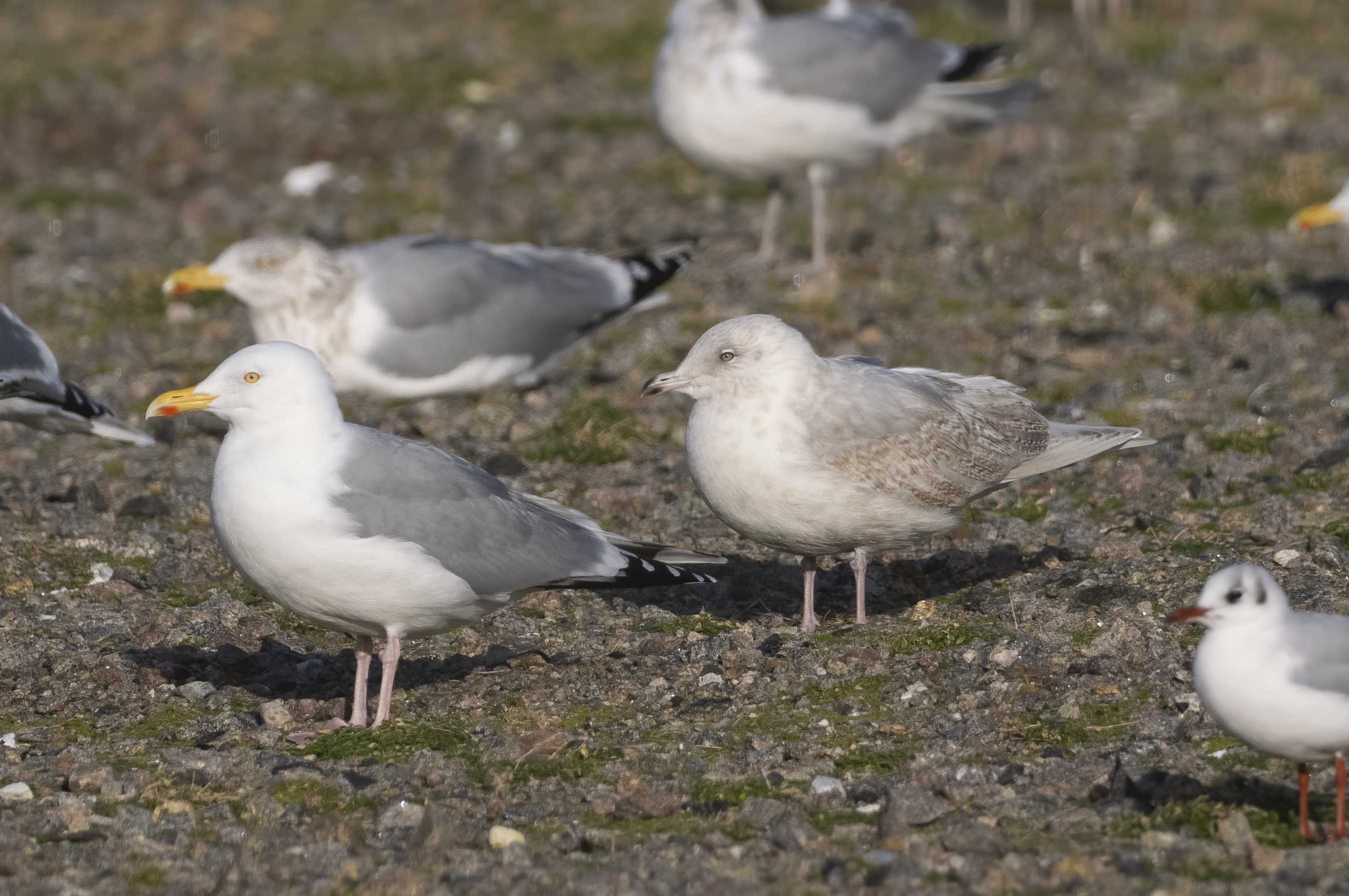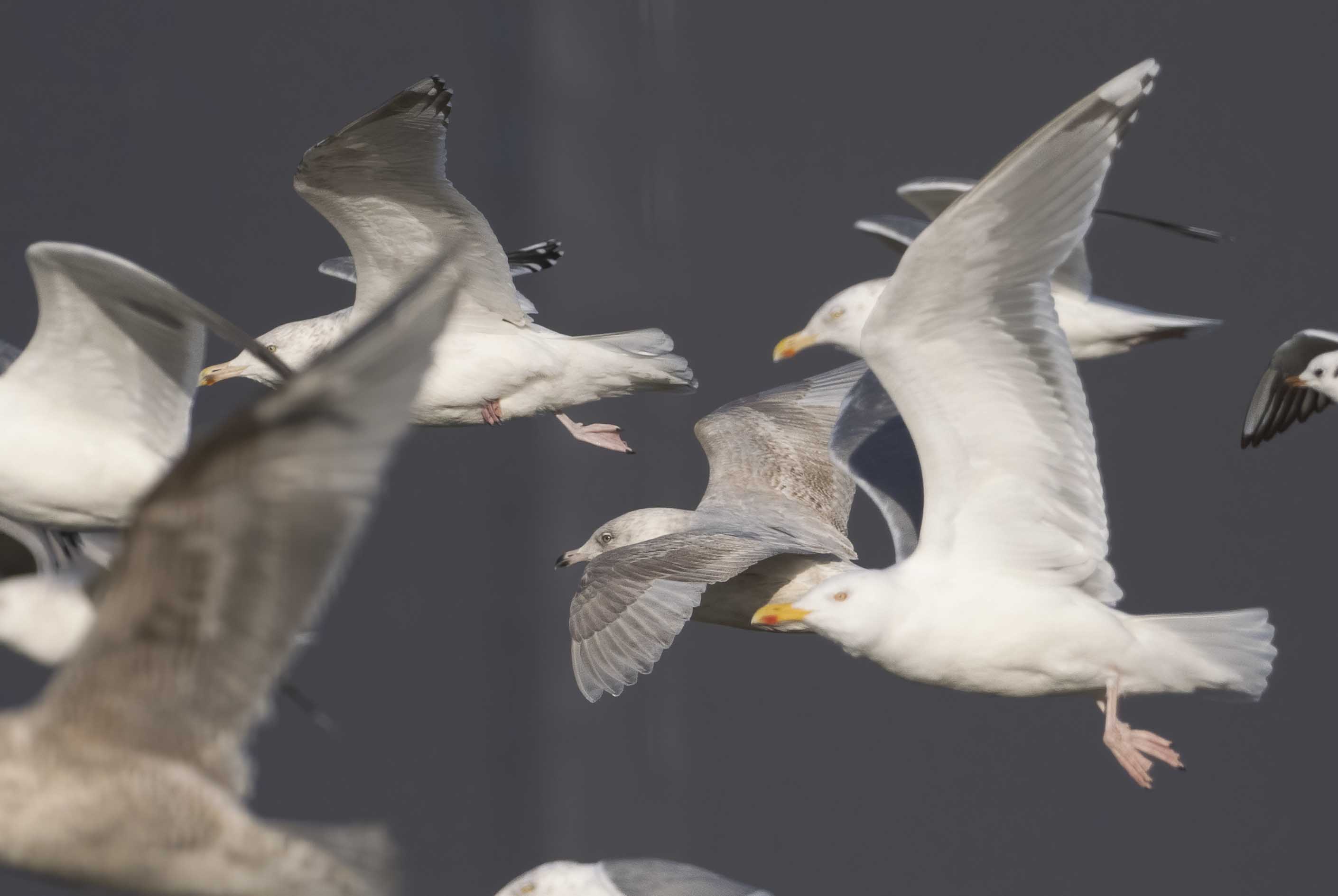 Beskrivelse: Denne 3K Hvidvingede Måge brugte jeg lidt ekstra tid på i dag. Især, naturligvis, på grund af de mørke markeringer i håndsvingfjerene. At der er tale om en Baffinmåge er muligt. Se desuden nærmere på de efterfølgende flugtfotos. Kommentarer er meget velkomne.