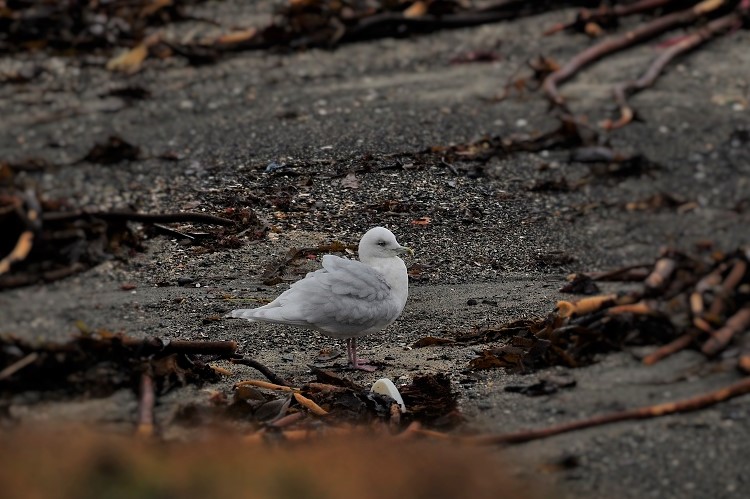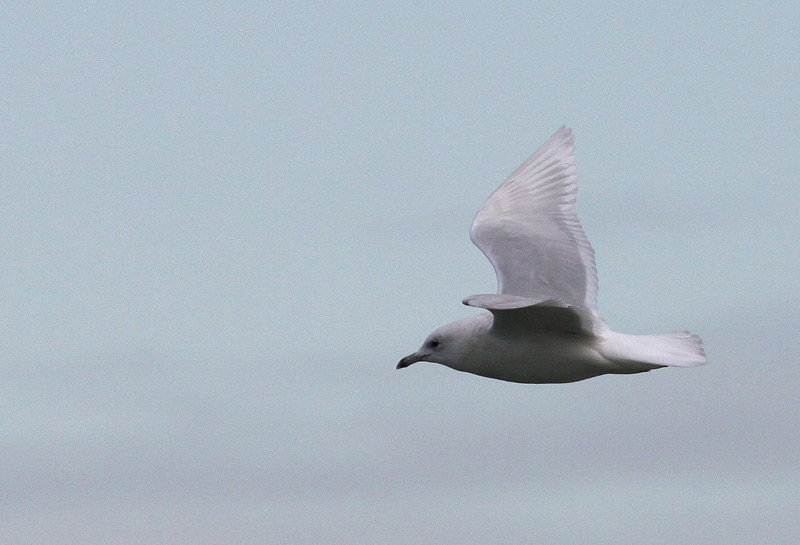 Tak for kommentarerne. Det må være den fugl, der også er dokumenteret 21.1. Fed var den, og den gjorde i felten det ret typiske kumlien´s indtryk: en Hvidvinget Måge der trænger til at blive vasket.