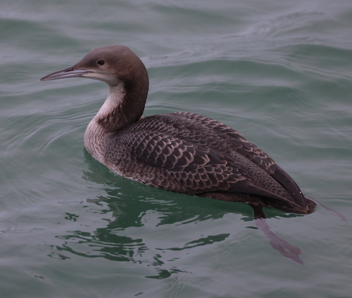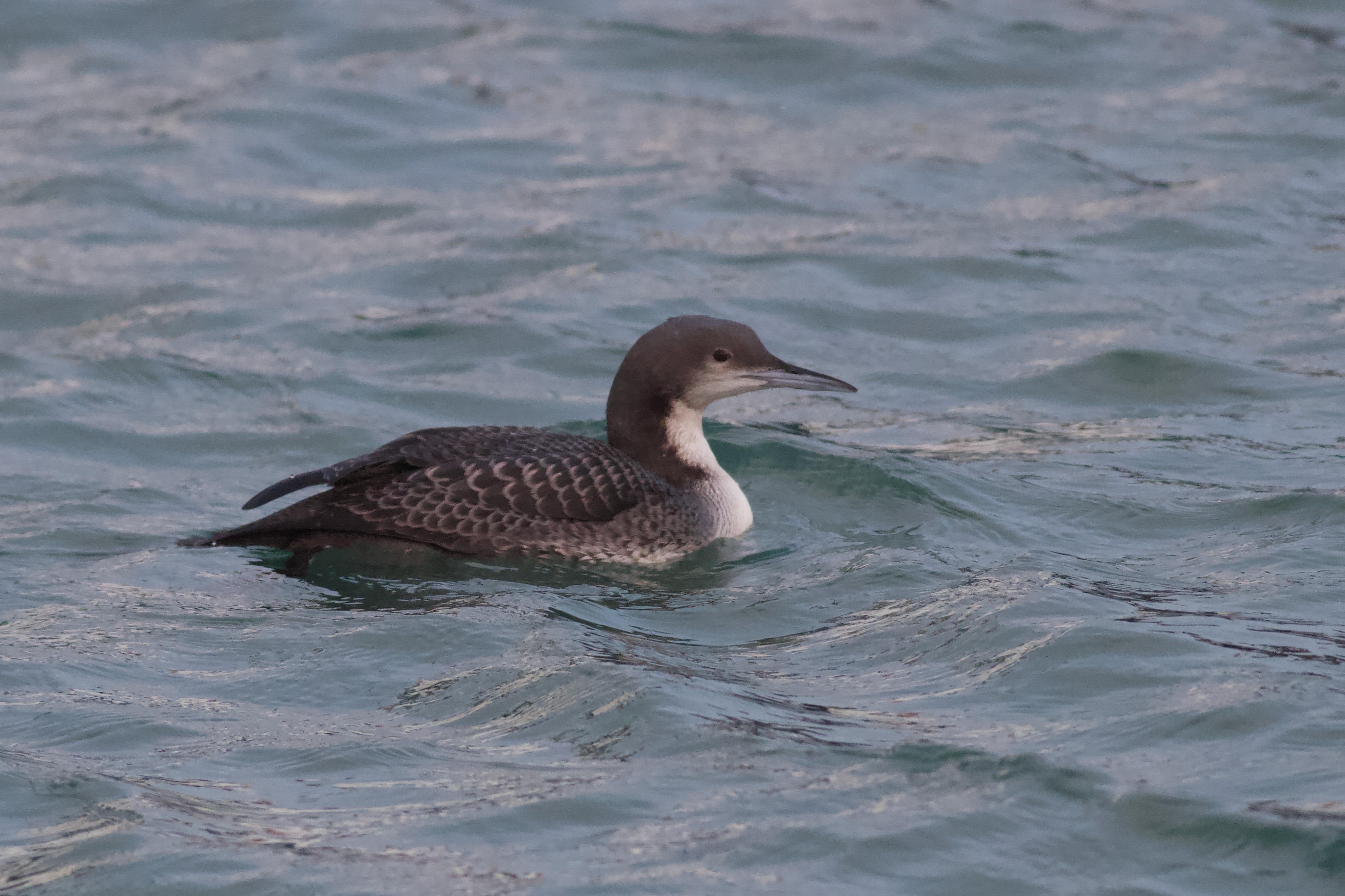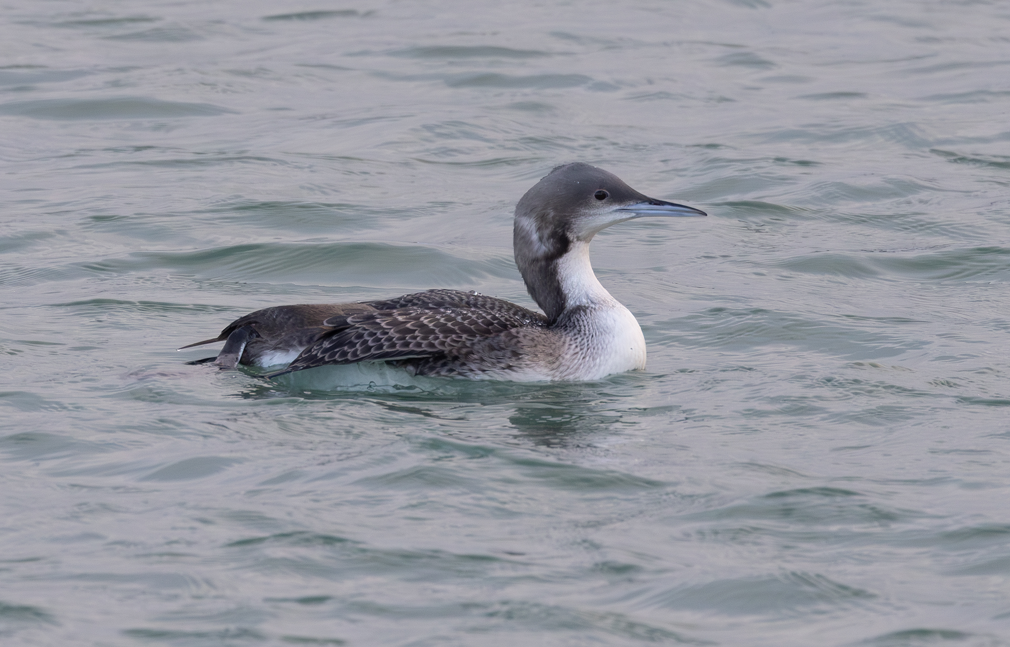 Beskrivelse: Vingeslag forfra med streg under hagen "chinstrap".