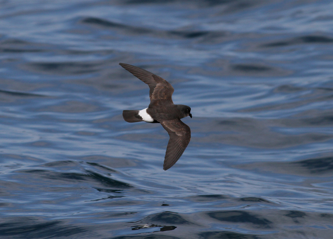 Beskrivelse: lille stormsvale lever virkeligt op til navnet: stormSVALE. Dette er en af ca. 10 set til havs på en pelagic udfor Sagres - ofte er antallet langt større og inkluderer næsten dagligt Wilsont Stormsvale frem til de første oktoberdage (her var vi desværre en dag for sent på den). Det blæste op undervejs, hvilket betæd, at havfuglene kunne ses under betingelser, der minder om de, der hersker ved kysterne herhjemme. Lille Stormsvale holder sig altid lavt nede i bølgedalene, og kan sagtens tages for en Bysvale, hvis kun oversiden ses. En rigtig god - og velkundt karakter er undervingens hvide midterstribe, der ses på meget langt hold - mindre kendt er det, at den hvide overgump er bred og strækker sig godt ned på gumpens sider, således at man - når fuglen ses bagfra - opfatter hvidt bånd på undervingen samt overgumpen som glimtende hvide tegninger, der giver fuglen er spraglet udseende.