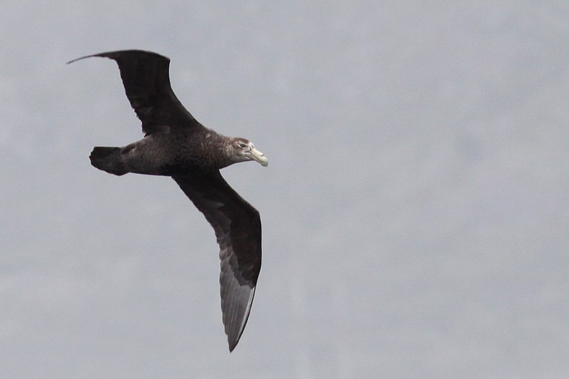 Beskrivelse: Nordlig kæmpestormfugl (Macronectes halli, juv/imm, øverst) og Sydlig kæmpestormfugl (Macronectes giganteus, juv, nederst). Ungfugle af de to arter kan kun kendes på næbspidsens farve – rødtonet hos Nordlig, lyst blågrøn hos Sydlig. Kendetegnet har tidligere været diskuteret i forbindelse med billeder på Netfugl. Som det kan ses på billederne her, er det ret svage farvetoner. Kendetegnet fungerer fint på kort afstand, men på længere afstand synes jeg det er svært. Det er dog korrekt, som beskrevet i div. field guides, at den rødlige næbspids hos Nordlig virker svagt mørk på afstand, mens hele næbbet hos Sydlig på afstand virker ensfarvet lyst.