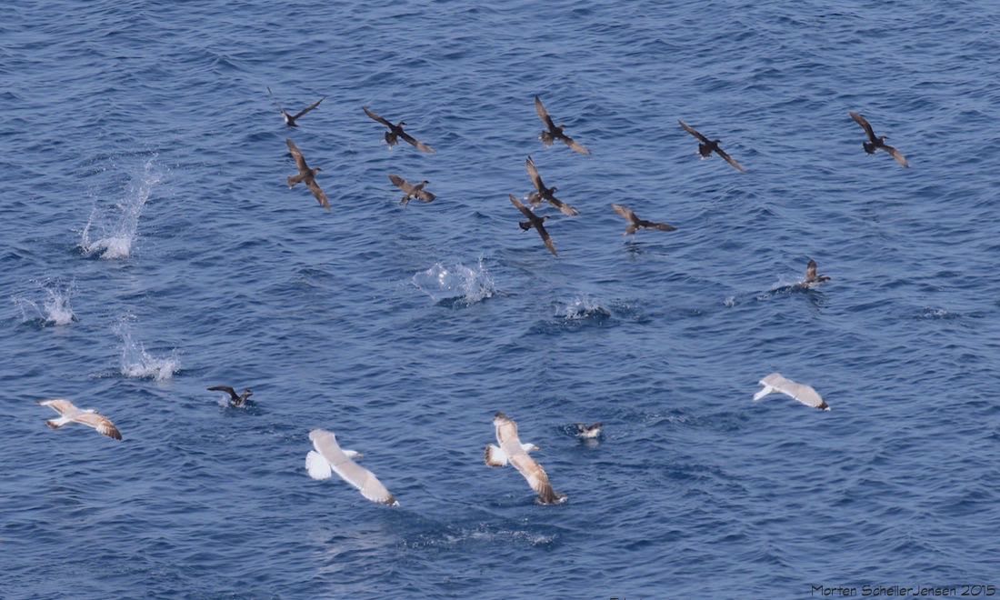 Disse dages observationer var præget af vadefugle, måger, terner, sortænder og en del suler. Jeg havde dippet en Topskarv et par dage forinden og kunne ikke finde Hvidvinget Korsnæb i området omkring Henne, på trods af dennes relativt mangfoldige optræden ved Blåvand. Følelsen af at blive forbigået havde sneget sig ind, og et kig på kystprofilen i Google Maps tilføjede yderligere pessimisme. Henne Strand ligger inderst i et blødt knæk – ikke just befordrende for havfugle. Ikke desto mindre ændredes alt på et sekund.