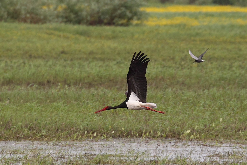 Beskrivelse: En tidlig morgen hvor frosten lå over hele Ekkodalen genfandt vi denne sorte stork som var set kort her aftenen forinden. Den var meget sky og lettede ved blot det mindste.