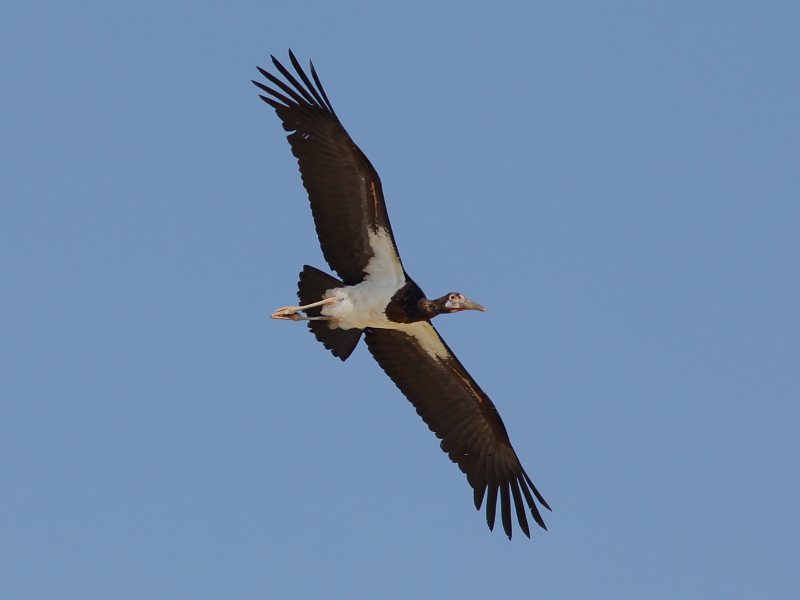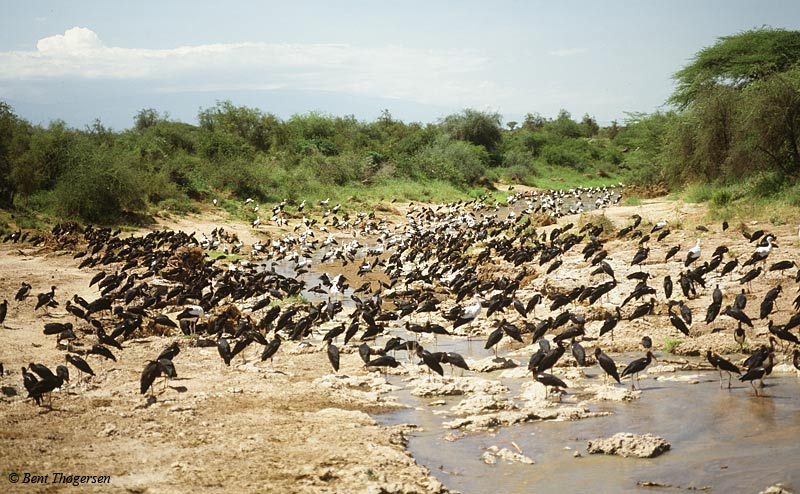 Vil umiddelbart mene det er Abdim's Stork - og ikke Sort Stork - ud fra størrelse, kort hals og benfarve, og en indikation pga. flokstørrelsen. Med hilsner/Steffen