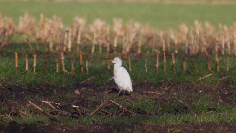 Titel: The Cattle egret is very opportunistic in choice of nature type and food. It expands rapidly in the US. Here at an Oyster bank on the Texas coast.